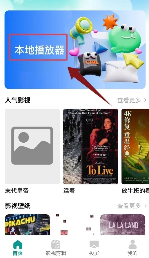 2、首页设有本地播放器入口,点击后即可直接播放设备内音视频。