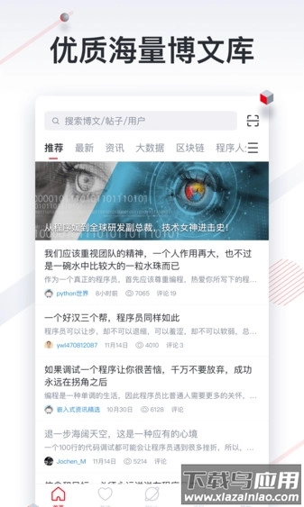 CSDN博客手机客户端是一款专为软件开发者与IT从业者打造的移动端社区应用,凭借大量优秀程序员的经验分享,它能助力你解决技术难题,拓展知识边界。应用内设有轻松的活动板块,工作闲暇时可进入灌水乐园聆听同行的幽默段子,让程序员们在交流中舒缓心情,增进彼此的理解。
