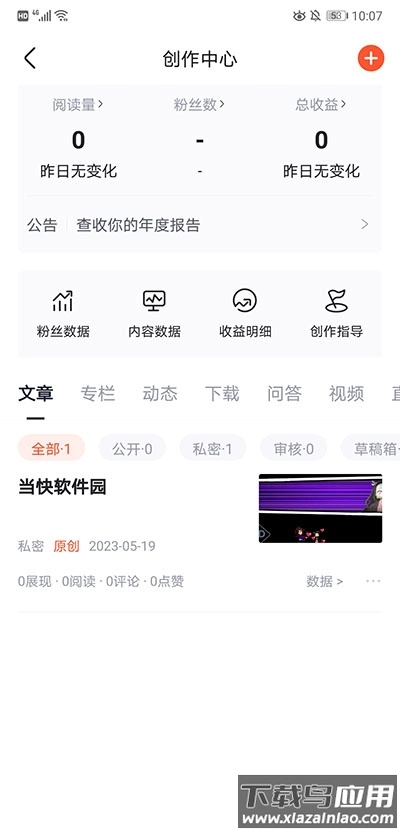 2、在创作中心中选择内容管理;