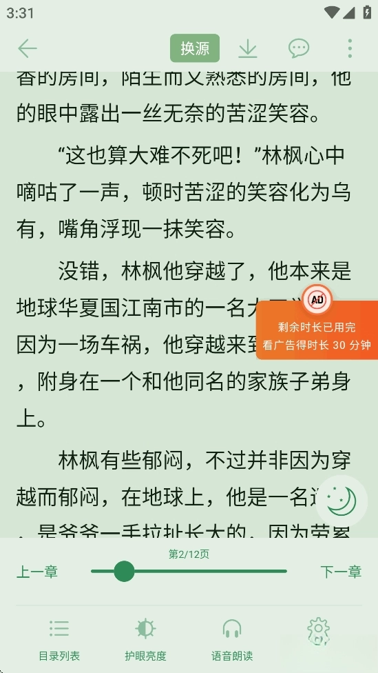 点击屏幕中间区域,就能进行换源、缓存、切换目录以及语音朗读等操作。