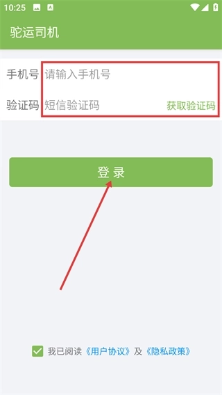 1、输入手机号码,获取并填写验证码,点击绿色的“登录”按钮,即可完成登录操作。
