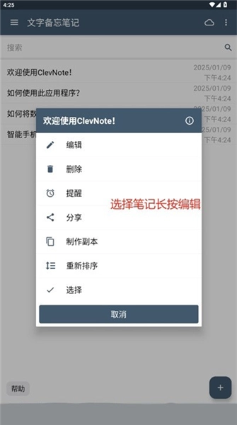 ClevNote具备多种实用功能,支持随时在线添加各类事件,还能设置日程提醒、加密存储等。无论是工作、生活,还是学习、运动,各方面的事件都可在线记录,各类精彩事件都不会被遗忘。您可以使用我们的软件在线创建备忘录,在备忘录中可以自由输入各种文本信息,为保障安全性,您可给备忘录设置密码锁,同时软件还提供搜索功能,能快速查找所需内容。