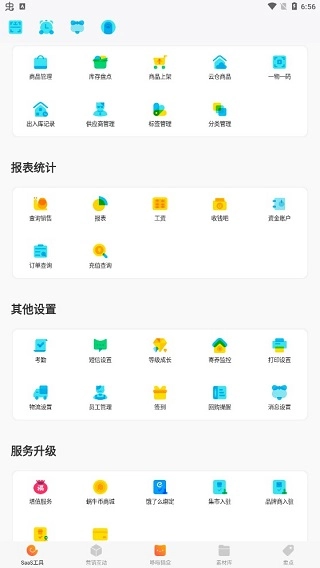 SaaS工具大多面向商家提供服务,涵盖门店运营、商品管理、报表统计等功能,还包括其他相关设置与服务升级等方面。