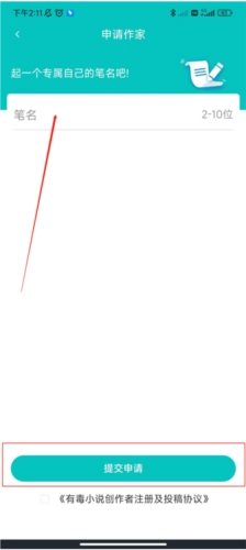 为自己取一个笔名后,点击提交申请