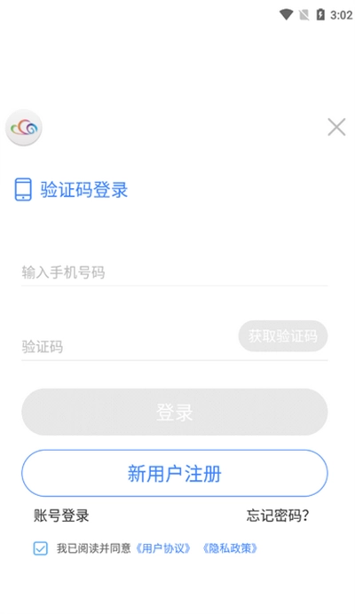 若您还未拥有账号,请点击“新用户注册”按钮,随后依次填写手机号码、获取并输入验证码,再设置密码即可完成注册流程。