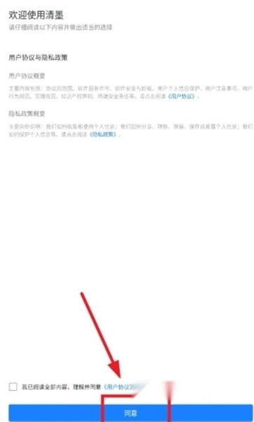 打开清墨,点击同意相关协议