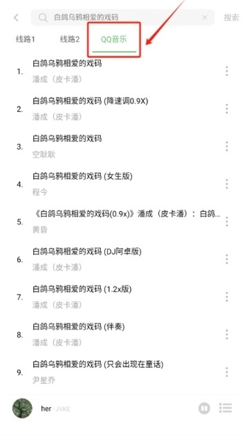 导入成功后,搜索自己喜欢的歌曲时,就能看到导入的音乐源了。