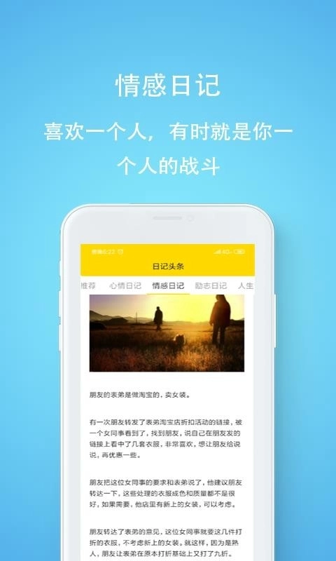 日记头条是一款文章阅读类应用,汇聚了海量优质文章内容。用户能在这里浏览自己感兴趣的文章,其涵盖的类型十分丰富,包括生活感悟、美丽日记,以及各类励志日记等。只需选择心仪的类别,就能迅速进入对应的阅读列表,阅读体验便捷流畅。它致力于为用户打造纯粹的阅读空间,帮助大家在阅读中领略文字的意境。此外,通过这款软件,你还能了解到诸多实用的生活用途,让你对未来的生活规划有更清晰的认知,从而不再对生活感到迷茫。有需求的用户不妨体验一番,阅读更多精彩的文章。