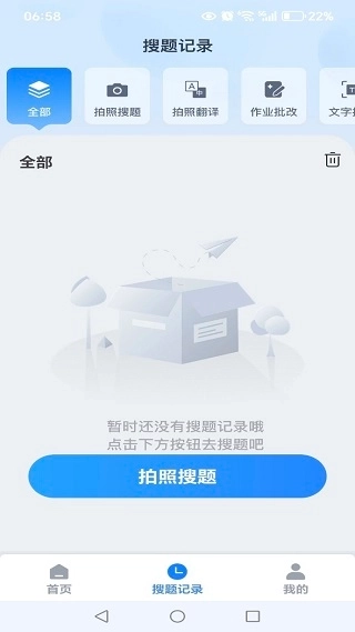 2、在搜题记录页面,支持便捷的拍照搜题功能。