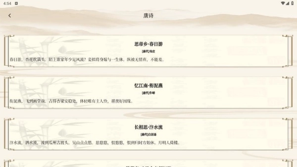 2、一键查看不同分类下的诗词内容,进行积累。
