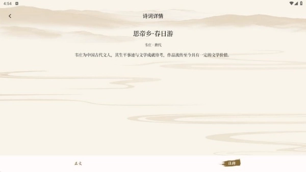 4、切换到注释页面,我们能了解诗词的更深入介绍。