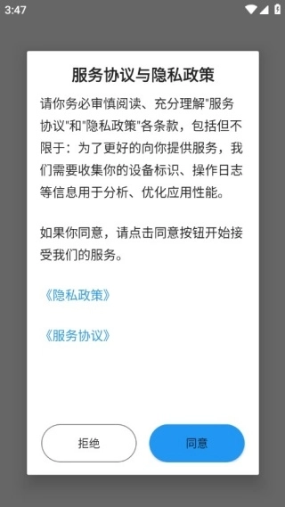 1、初次使用时,需阅读并同意服务协议及隐私政策,完成平台授权操作。
