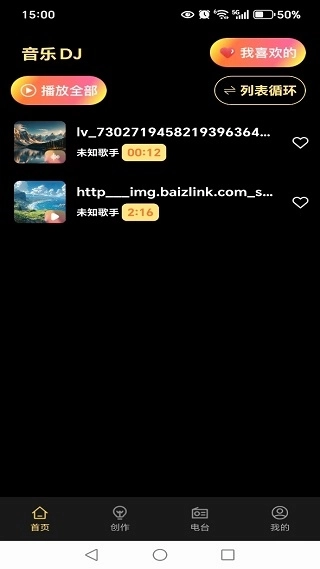 4、确认发布后,你之前勾选的本地音乐就会全部显示在上方,可随时播放。