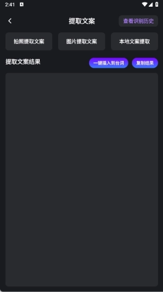 3、点击“提取文案”后,可选择通过拍照提取文案、从图片中提取文案或提取本地已有的文案。