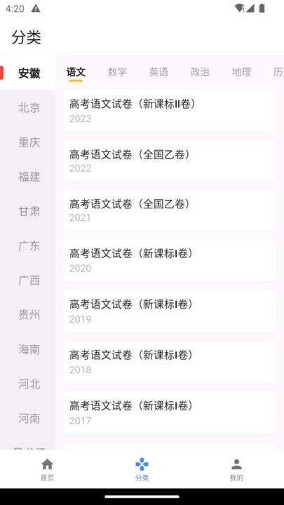 收录了多年的高考真题,用户可以根据自己的地区和科目进行选择。