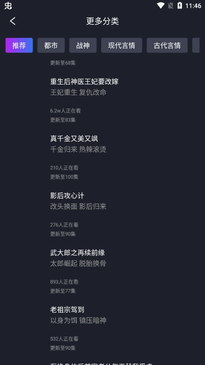 2.分类 平台汇聚了各式各样的短剧,用户能够依据分类快速查找心仪内容。