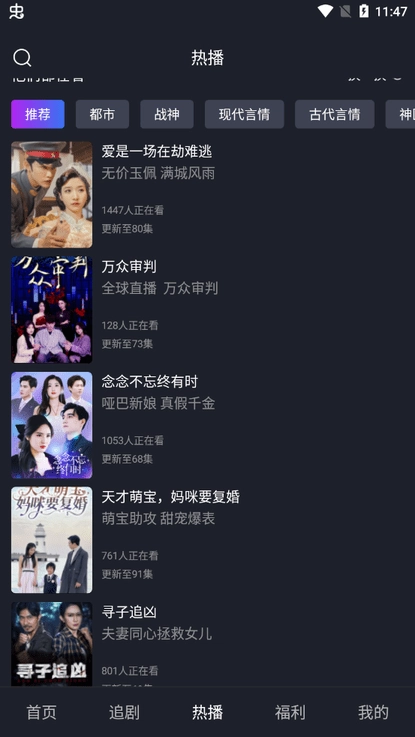 3.热播专区汇聚的都是精彩短剧,当用户不知道该看什么时,不妨来这里探寻一番