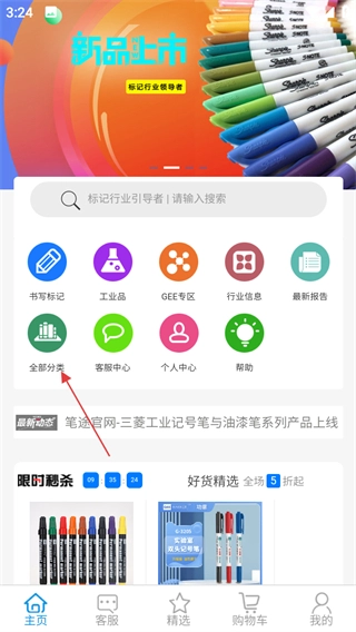 点击页面中的全部分类,进入所有分类页面。
