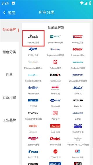 在任意分类页面中,选定Sharpie三福品牌,即可进入该品牌的商品列表页面。