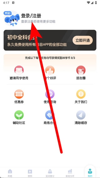 在个人中心页面,点击登录注册按钮,即可进入登录注册界面。