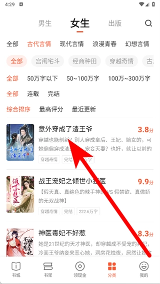 可以在分类页面挑选自己的阅读偏好,再借助古代言情这类标签进行筛选,从而找到感兴趣的小说。