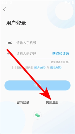 在用户登录页面,点击快速注册,进入注册页面。