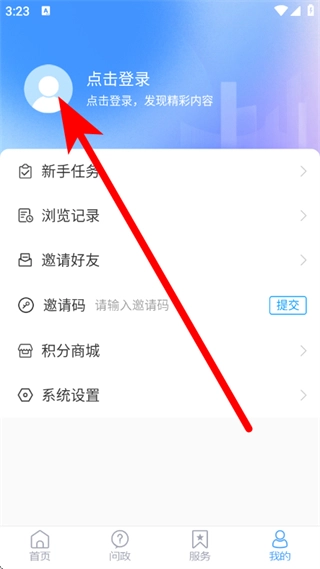 打开乐陵融媒体,点击底部我的,进入我的页面。