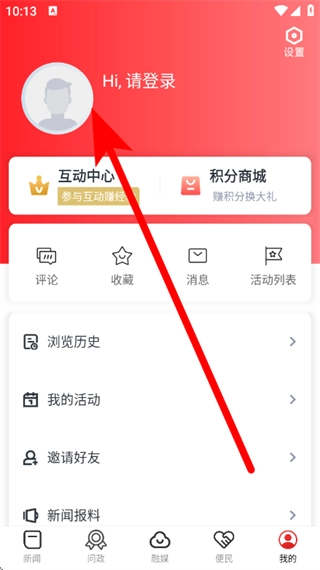 2、在我的页面,点击请登录区域,进入注册页面。