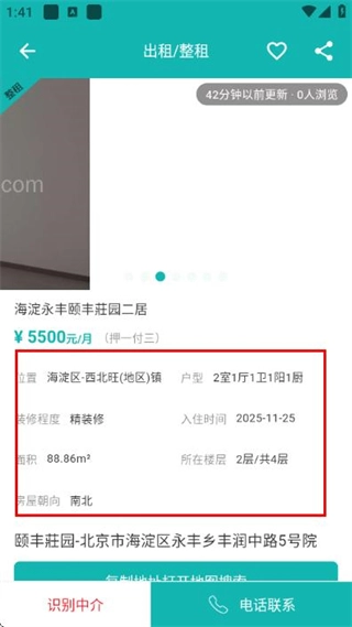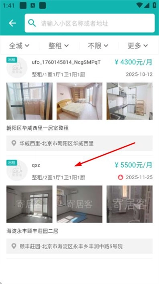 2、在出租房源列表页面点击目标房源,进入该房源的详情页面。