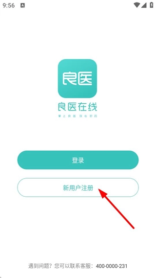 1、在良医在线的启动页面,点击新用户注册按钮,即可进入用于填写注册手机号的页面。