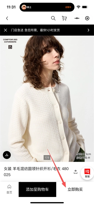 4、在开衫商品列表里,挑选目标商品,进入该商品的详情页面。