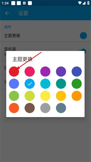 在设置页面点击主题更换,弹出主题颜色选择窗口。
