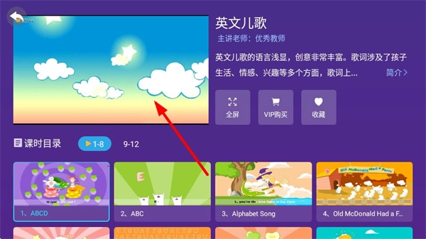 3、在儿歌童谣页面,选择目标内容,进入该内容的详情页面。