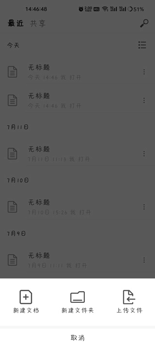 6、编辑完成的文档会保存在最近列表中,并且会自动保存在云端,并且可以导出为word文档。