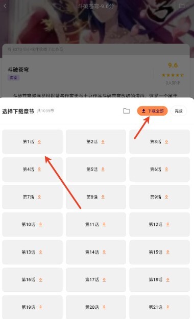 2、若需阅读特定章节,点击相应章节即可开启阅读;若想阅读所有章节,点击左上角的“全部”选项,随后等待加载完成即可。