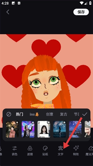 3、点击【文字】功能,为图片添加文字内容。
