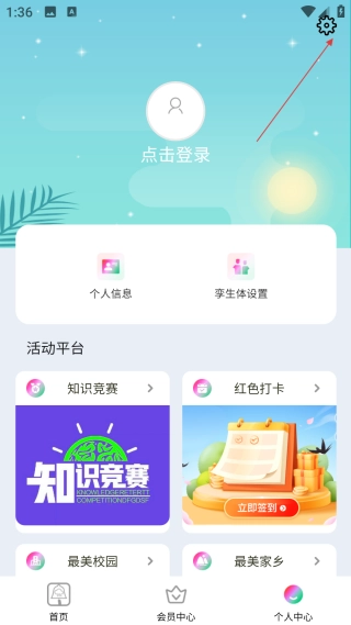 2、进入个人中心页面后,点击界面右上角的设置图标,即可进入应用设置界面。