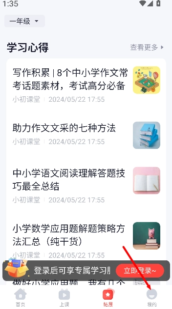 1、点击右下角“我的”,进入个人中心查看学习相关功能入口。