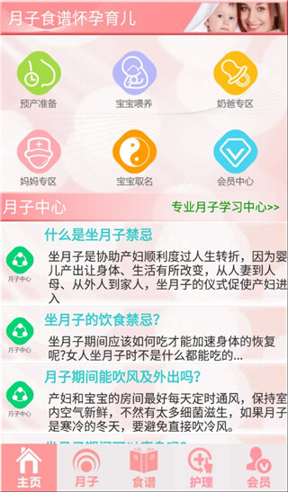 1、月子中心:提供800个坐月子相关问答,全方位解决你在坐月子期间碰到的各类问题。