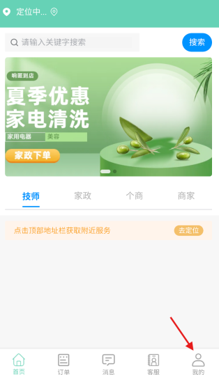 1. 开启响匿到店上门按摩广告应用,于主界面下方轻点“我的”,从而进入个人中心页面。