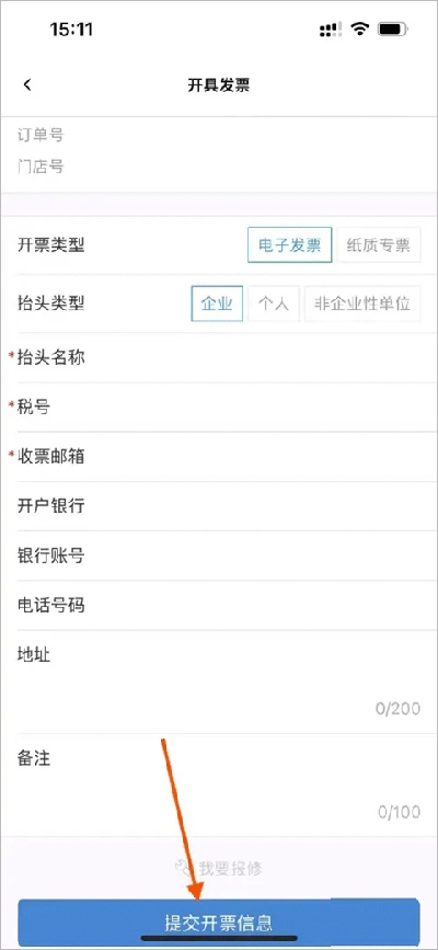 3、在开票页面填写抬头名称、税号等信息后,点击【开具发票信息】按钮即可完成发票开具。