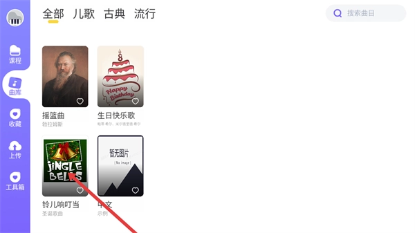 2、从曲库中挑选想要练习的目标曲目,比如《铃儿响叮当》,点击该曲目对应的条目就能进入曲目练习界面。