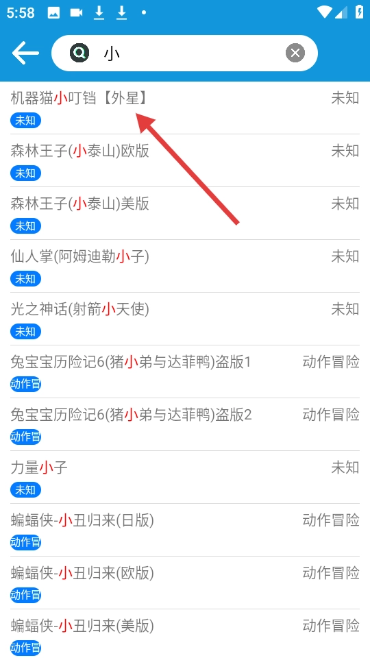 4、在搜索结果列表里,找到并点击你想玩的目标游戏(例如“机器猫小叮当【外星】”),就能进入游戏开始体验啦。