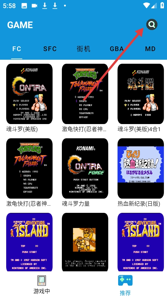 1、覆盖FC、红白机、SFC、街机、GBA、MD、H5等多平台,2万余款经典游戏均经过测试,资源量丰富,确保游玩稳定性。