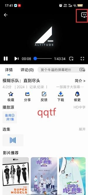 在播放界面点击右上角的小电视图标。