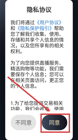 1、仔细阅读隐私协议的内容后,点击【同意】按钮,以此确认您接受其中的相关条款。