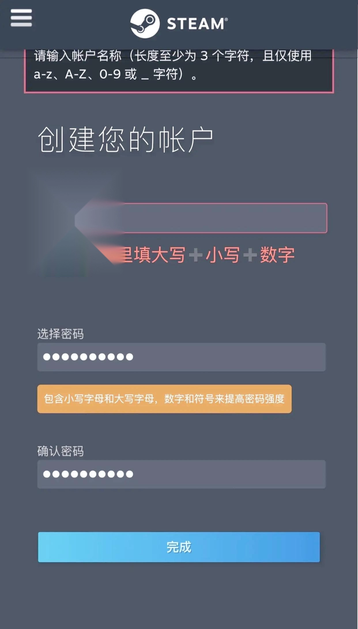 3.设置复杂密码,包含大小写字母、数字和符号。
