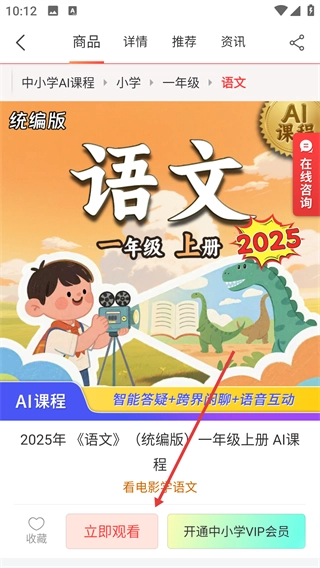 4、在课程详情页点击【立即观看】按钮,就能开启该课程相关内容的学习。