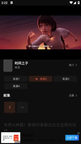 3、软件的播放界面具备简介查看、视频源选择、投屏等功能,用户可根据需求自行选用。