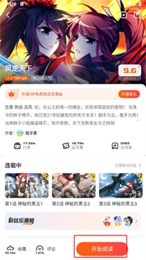 3、接着来到作品详情的页面中,我们可以看到作品的相关书籍,我们点击右下角的【开始阅读】;